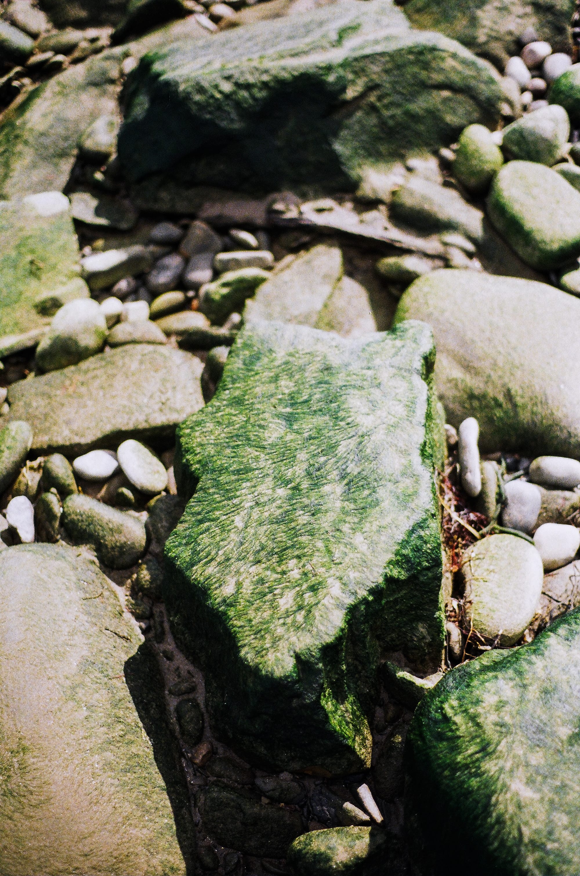 I tested negative for covid. Auntie took me to the beach. Rainbow Haven. I went there semi-frequently when I lived in Nova Scotia. It was a very quick drive from my house with my Dad and whenever I could I popped by the beach. The wind there wakes you up, helps you notice. My eyes were puffy and my face swollen from the months of stress. We collected parts of shells, fun rocks. The stones stuck in the wet sand on the edge of the ocean wore wigs of dark green plant life; I pet them. We bumped into my Dad's friends and their dog. Of course on the same day I landed in Nova Scotia I had seen an ex, an old friend from high school and now my Dad's close friends on a nearly empty, cold-ass beach. I took photos. I hadn’t packed much but I brought my 35mm camera and 8 rolls of film, almost as common and natural for me as packing a toothbrush for a trip. I thought I would only be there for a weekend. It ended up being 4 weeks. In my heated panic of packing, there is always an innate insistence within me that I should be documenting what I’m experiencing. I’ve been documenting my pain for so long, journaling since age 9. Artifacts of my past!